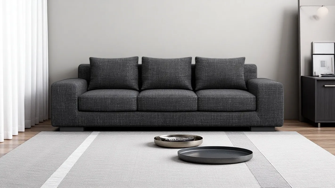 Canapé 3 places 225x95x88 cm Gris Tissu moderne avec accoudoirs carrés