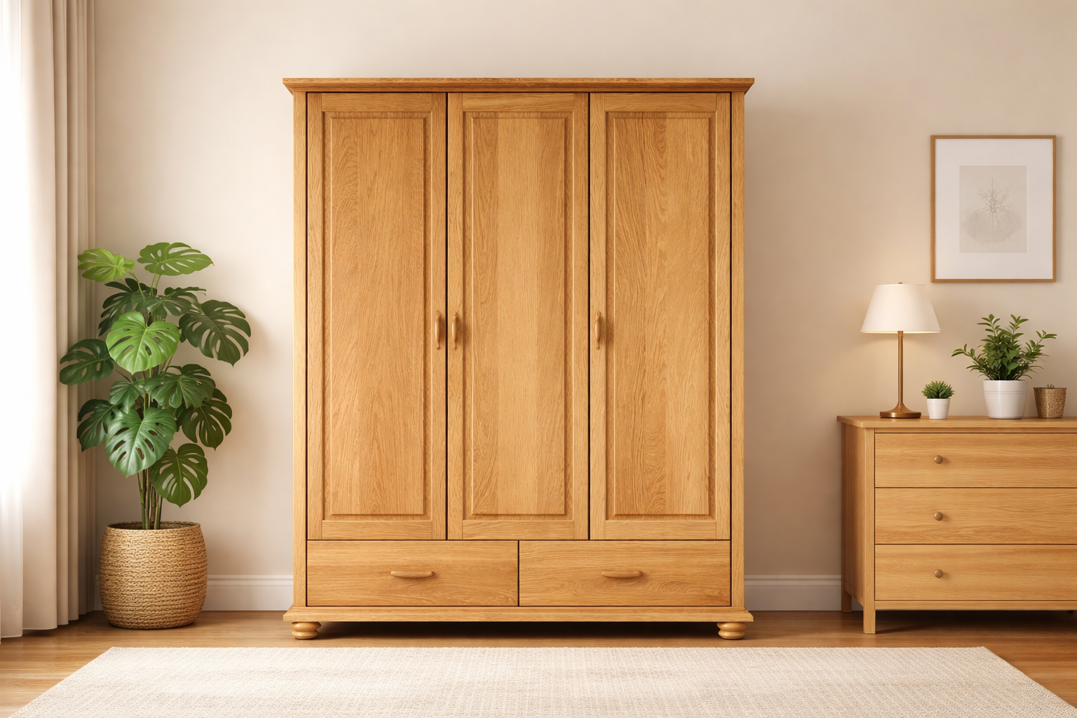 Armoire 135x58x210 cm Chêne 3 portes avec tiroir inférieur