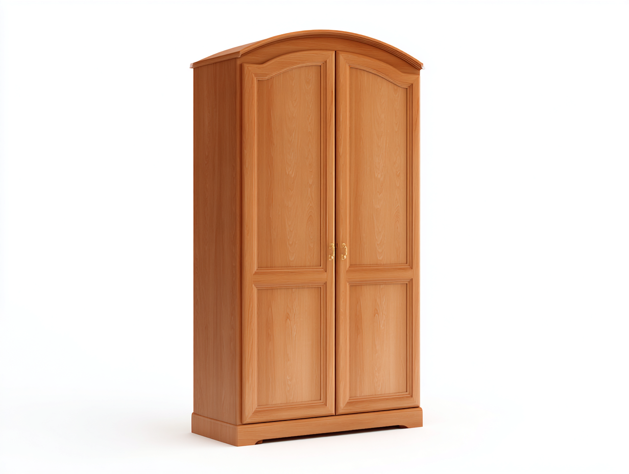 Cette armoire en chêne avec haut cintré apporte une touche traditionnelle et chaleureuse à la chambre.