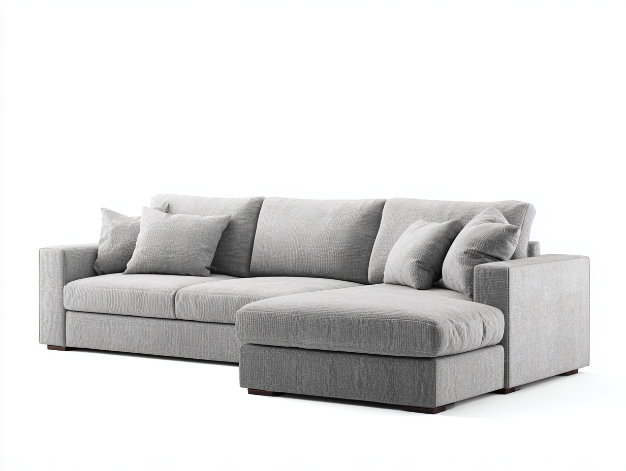Ce canapé d’angle en tissu gris clair allie élégance moderne et confort quotidien.