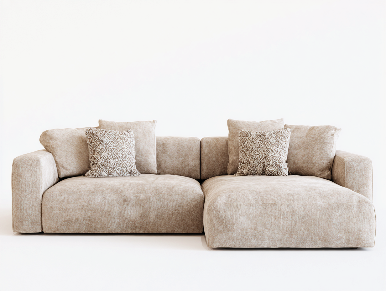 Tissu beige résistant avec rembourrage moelleux et structure durable.